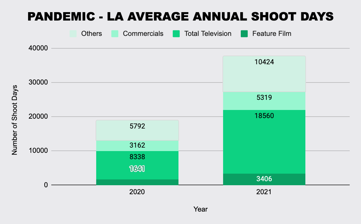 Editor's Note: After going a wider search for production days outside of delays, most of the data is around the Los Angeles Area. Therefore this article only reflects the LA industry, independent from other major hubs.